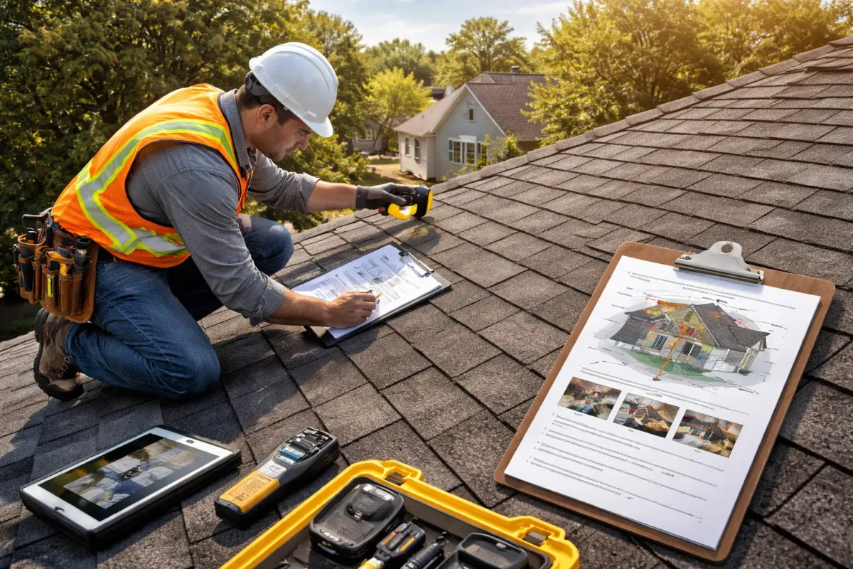 A residential roof inspection includes a visual review of shingles or roofing materials, flashing, vents, valleys, and other exposed areas. The inspector looks for signs of wear, storm damage, moisture intrusion, and installation issues and documents any concerns found.